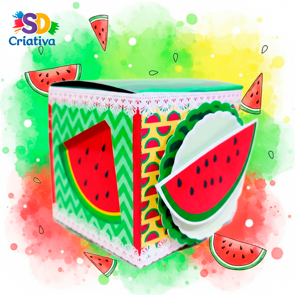 Prepare-se para o “piquenique” mais refrescante de todos! A Caixa Cubo Melancia da SD Criativa é o item indispensável para quem busca uma lembrancinha alegre, vibrante e cheia de energia para celebrar aniversários infantis. Com um design que celebra a fruta mais querida do verão, esta peça transforma a mesa de doces em uma verdadeira quitandinha gourmet, encantando convidados com seu visual lúdico e moderno.