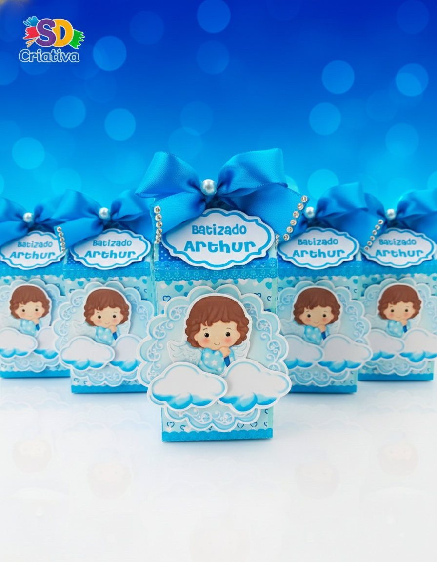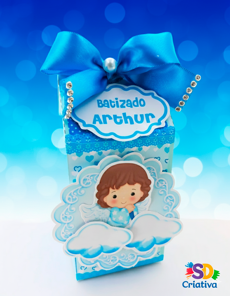 O batizado é um dos marcos mais emocionantes na vida de uma família, e a Caixa Milk Anjinho Luxo da SD Criativa foi desenhada para refletir toda a sacralidade e ternura desse momento. Com um design sereno em tons de azul e detalhes delicados de renda, esta peça não é apenas uma lembrancinha, mas um símbolo de fé e carinho que seus convidados guardarão com amor.
