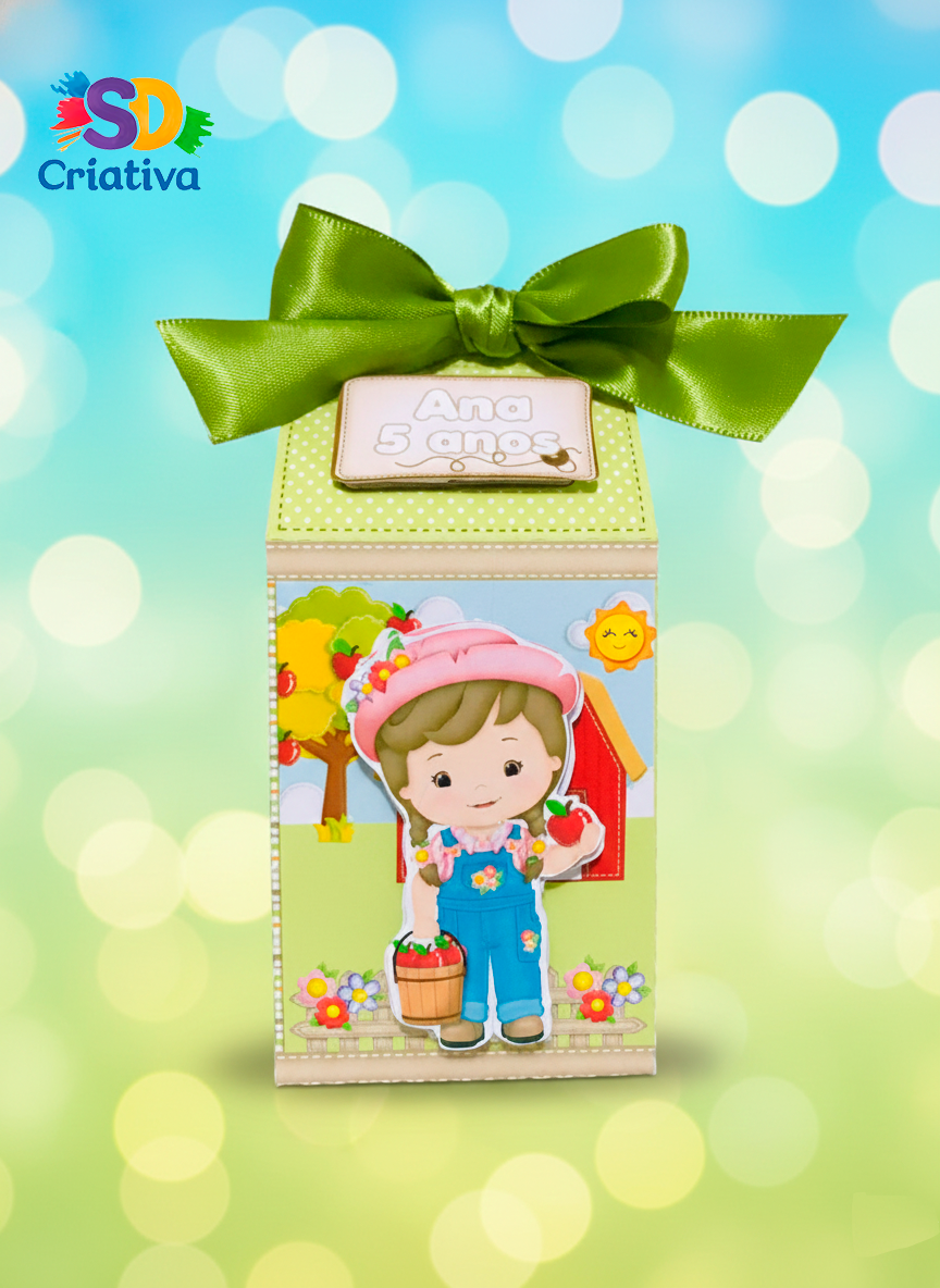 Prepare-se para abrir a porteira e receber seus convidados com todo o carinho do campo! Apresentamos a Caixinha Milk Fazendinha Menina da SD Criativa. Desenvolvemos este modelo para levar a rusticidade acolhedora da fazenda com um toque de delicadeza e luxo, transformando sua festa em um verdadeiro cenário de interior.