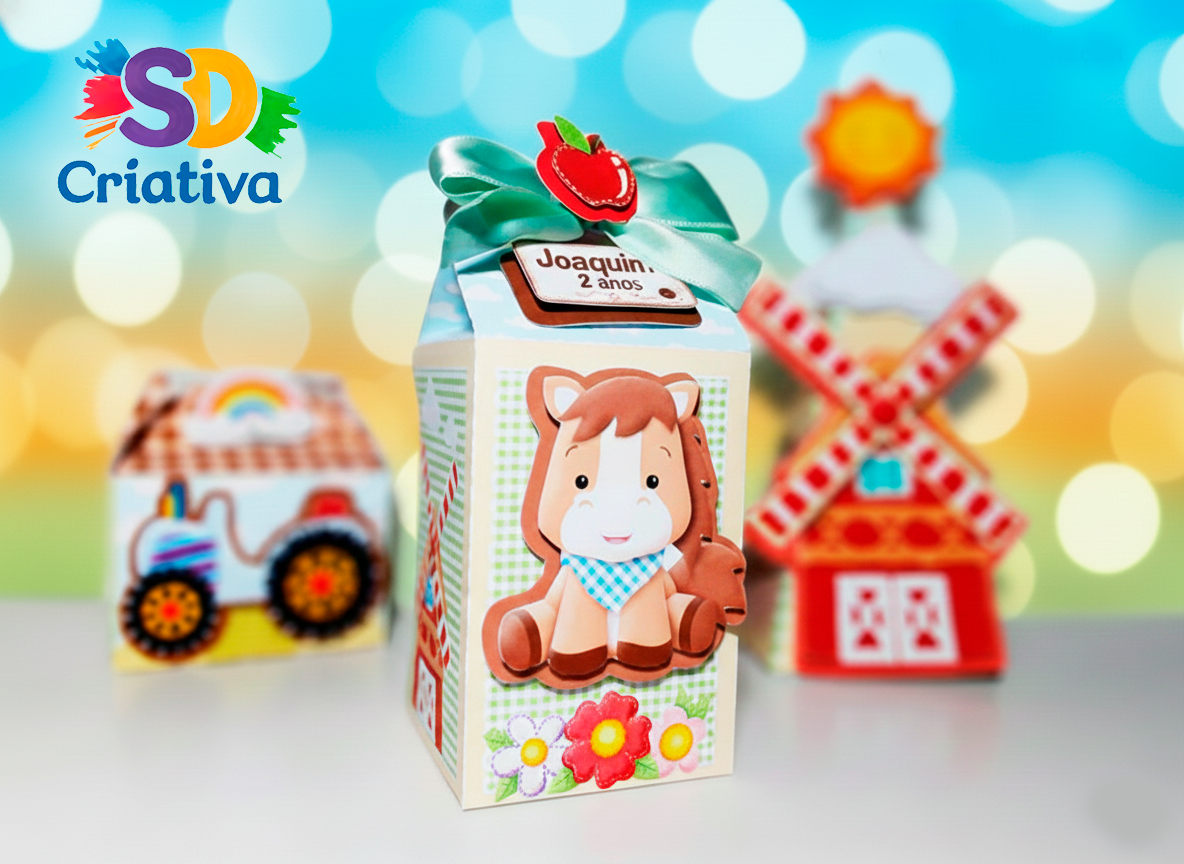 Prepare-se para abrir a porteira e receber seus convidados com todo o carinho do campo! A Caixinha Milk Fazendinha da SD Criativa é o item ideal para quem busca uma lembrancinha vibrante e cheia de vida para celebrar aniversários infantis. Com um design que homenageia a alegria da vida na roça, esta peça transforma a mesa de doces em um verdadeiro cenário de fazenda, encantando crianças e adultos com seus detalhes cuidadosos.