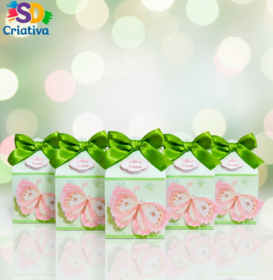Prepare-se para encantar seus convidados com a delicadeza que só a natureza pode inspirar! A Caixa Alça Jardim de Borboletas da SD Criativa é a escolha ideal para quem busca uma lembrancinha sofisticada, lúdica e cheia de frescor. Com um design que une tons de verde menta e rosa pastel, esta peça transforma a mesa de doces em um verdadeiro cenário de sonhos.