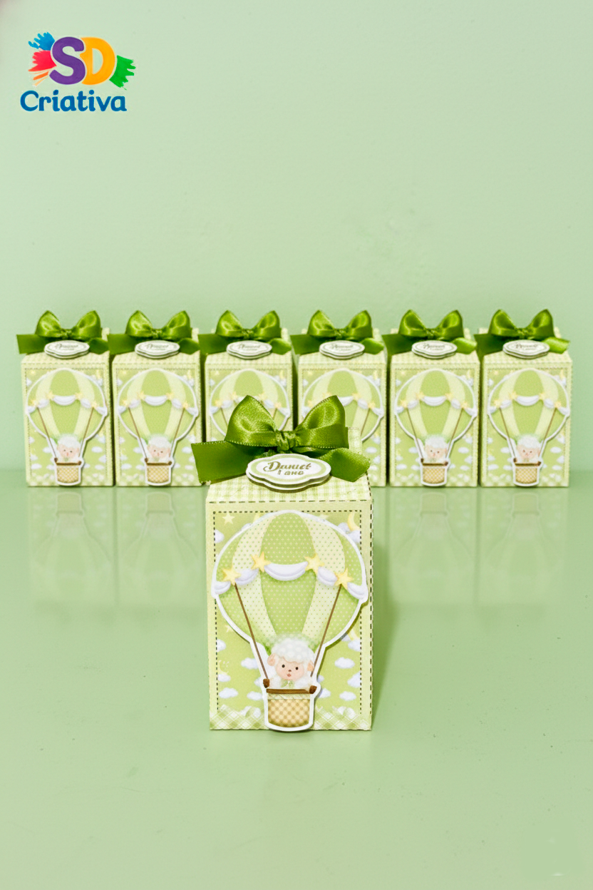 Personagem Carismática: A caixa destaca uma ovelhinha fofinha a bordo de um balão delicado, aplicada em camadas (efeito 3D) para trazer relevo e vida à peça.