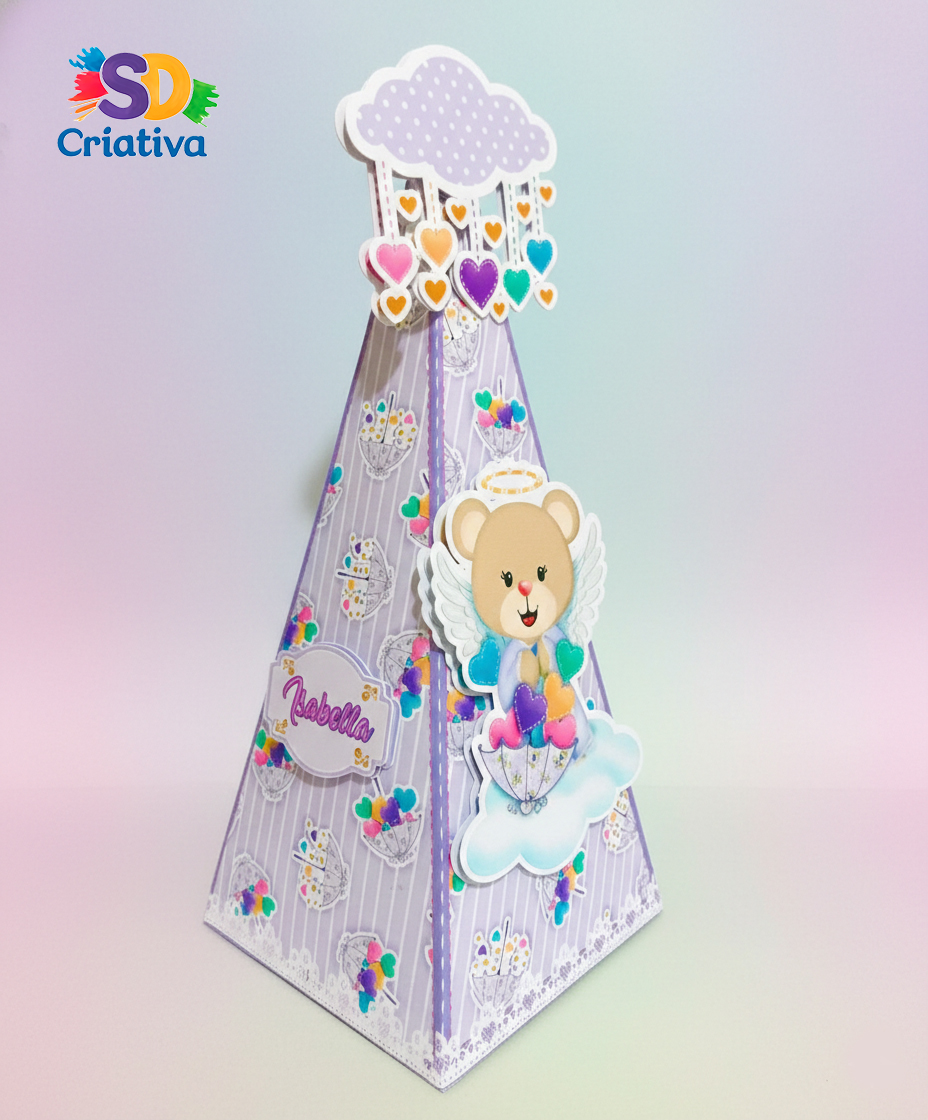 Abra o guarda-chuva para o encanto! A Caixa Pirâmide Chuva de Amor da SD Criativa é a escolha perfeita para quem busca uma lembrancinha que transborda suavidade e gratidão. Com um design que celebra a doçura dos sonhos, esta peça transforma a mesa de doces em um cenário iluminado, encantando convidados de todas as idades com os detalhes da nossa alta papelaria.