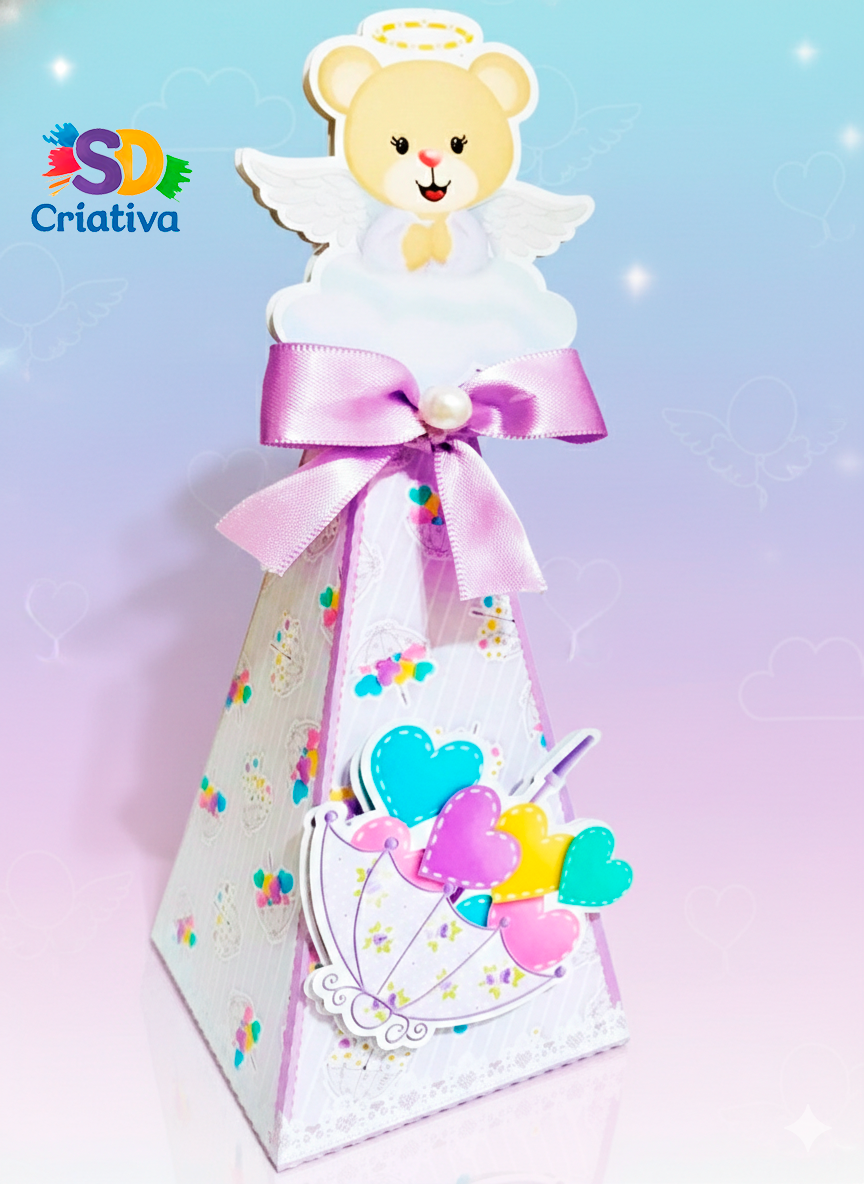 Modelo: Caixa Pirâmide (Cone) com Apliques 3D e Topo de Ursinho.