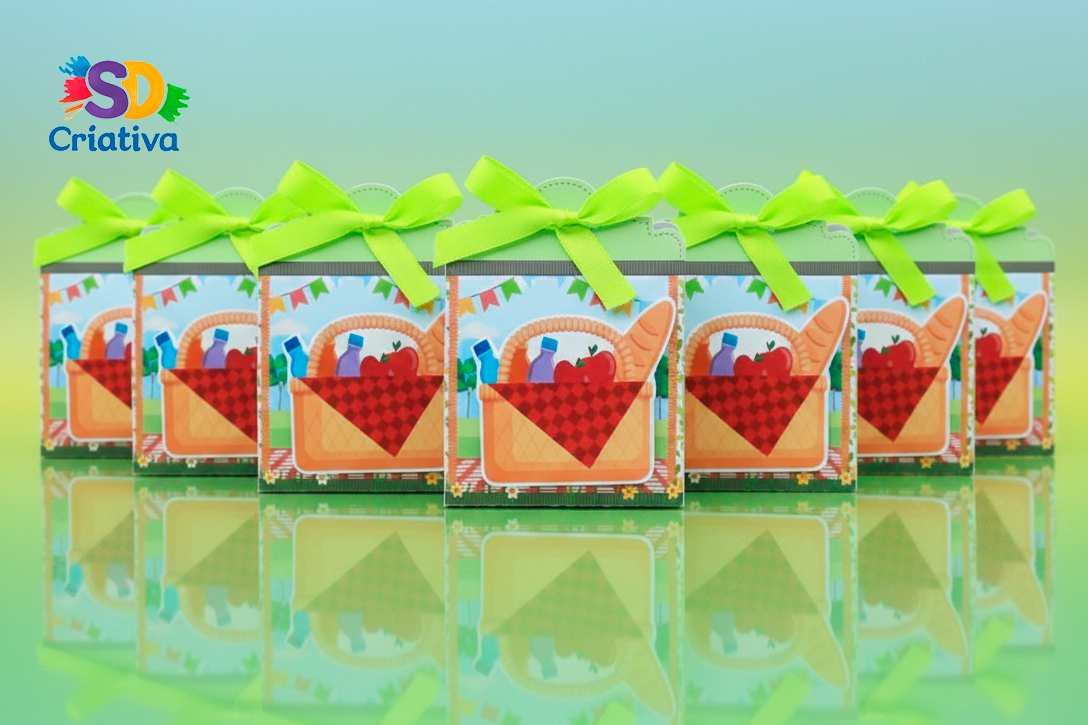 Prepare a toalha xadrez e o coração para tanta fofura! A Caixa Surpresa Picnic da SD Criativa é o item ideal para quem busca uma lembrancinha alegre, lúdica e cheia de frescor para celebrar aniversários infantis e eventos ao ar livre. Com um design que remete aos lanches mais divertidos no parque, esta peça transforma a mesa de doces em um verdadeiro cenário de jardim, encantando a todos com sua delicadeza.