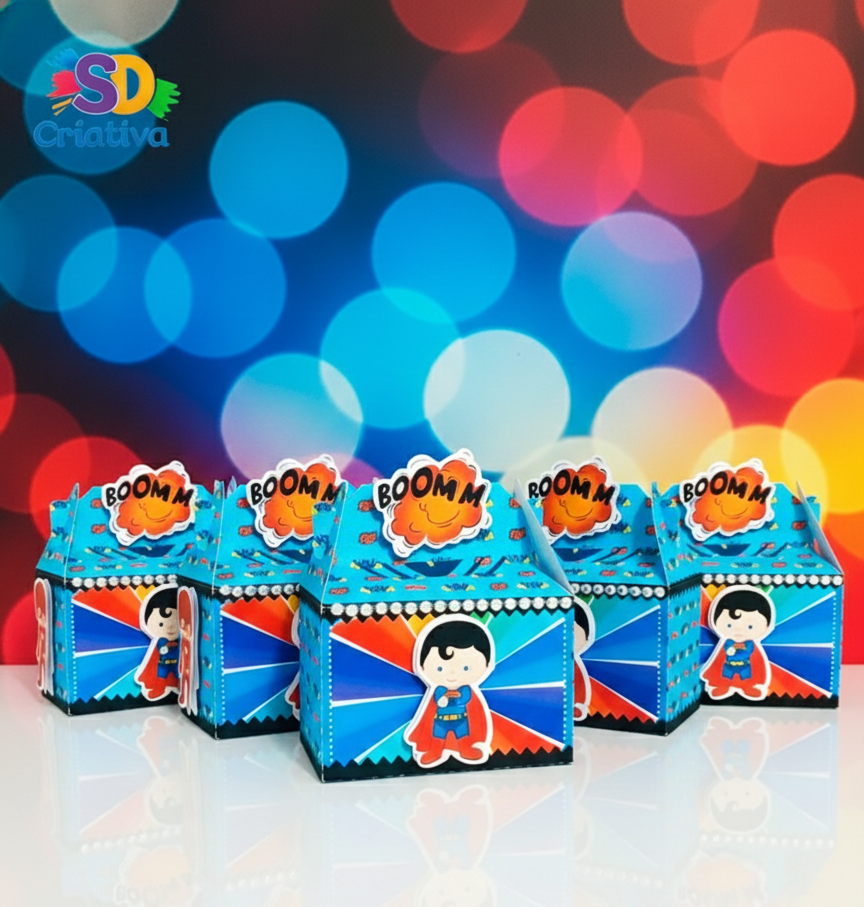 O resgate da diversão está garantido! A Caixa Surpresa Super-Heróis da SD Criativa é o item indispensável para quem busca uma lembrancinha vibrante, moderna e cheia de ação. Com um design inspirado nos maiores defensores da justiça, esta peça transforma a mesa de doces em um verdadeiro quartel-general de aventuras, encantando os pequenos justiceiros e seus convidados.