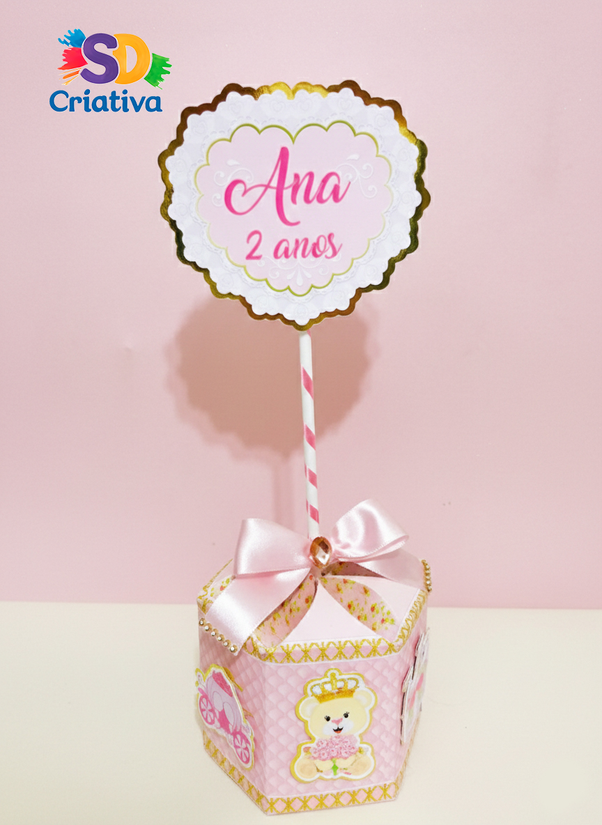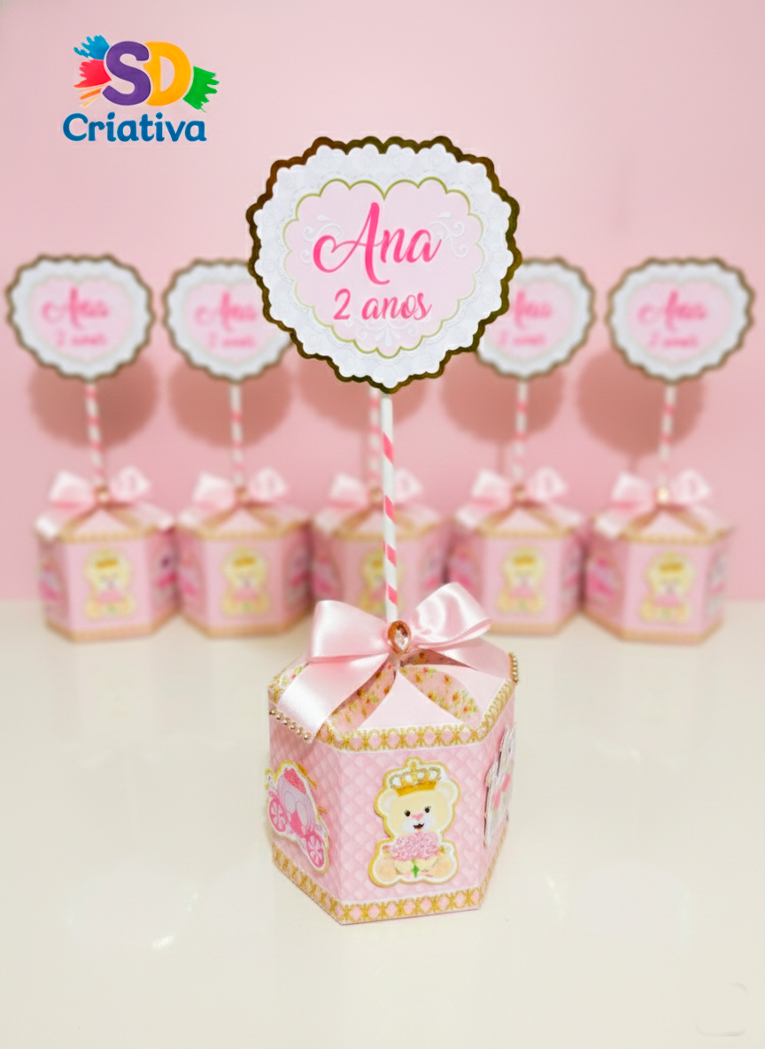 O grande baile real já vai começar! O Centro de Mesa Ursinha Princesa da SD Criativa é a peça de destaque que faltava para transformar o ambiente da sua festa em um verdadeiro palácio. Com um design imponente e acabamentos de luxo, esta peça une a fofura de uma ursinha com a sofisticação de uma princesa, encantando a todos com a qualidade da nossa alta papelaria.