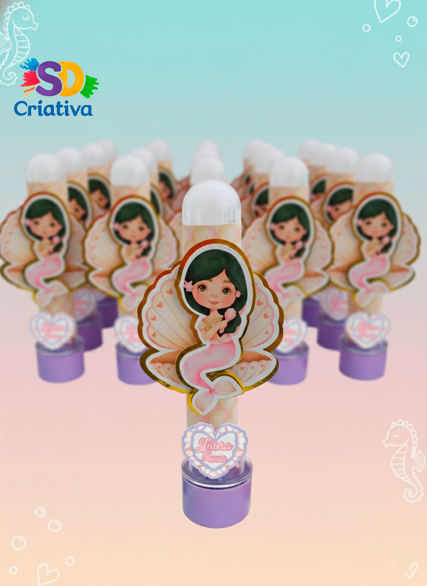 Prepare-se para descobrir os tesouros mais preciosos do oceano! O Tubete Sereia e Fundo do Mar da SD Criativa é a peça que faltava para trazer a magia das águas para a sua festa. Com um acabamento de luxo que reluz como o sol no mar, esta lembrancinha transforma qualquer mesa de doces em um verdadeiro reino subaquático.